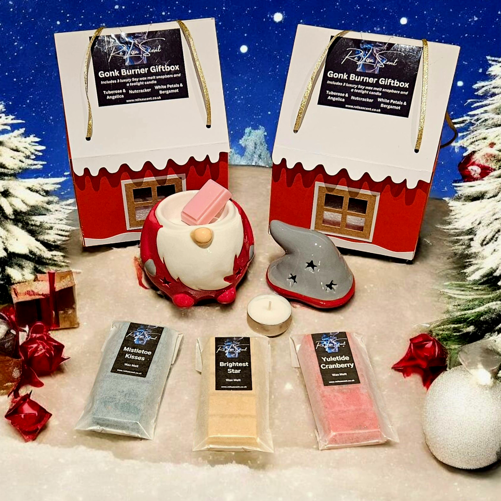 Packed with festive charm, each giftbag comes in the form of a Santa Gingerbread Houseâadorably designed to delight. Inside, youâll find a cozy festive gonk wax burner, three seasonal snapbars, and a tealight candle to fill your home with holiday magic.